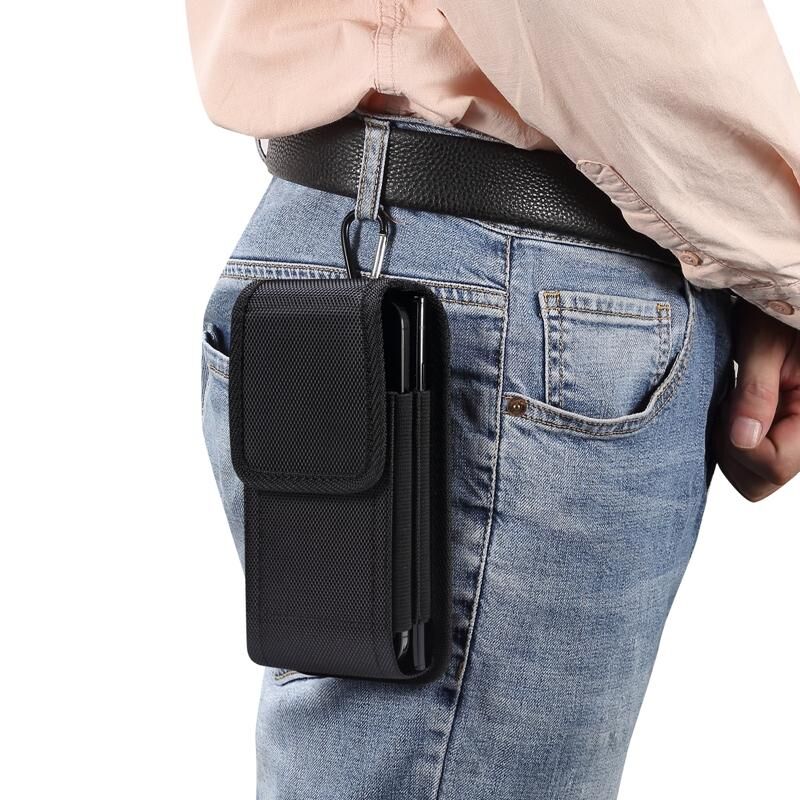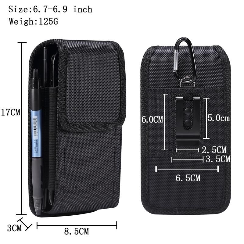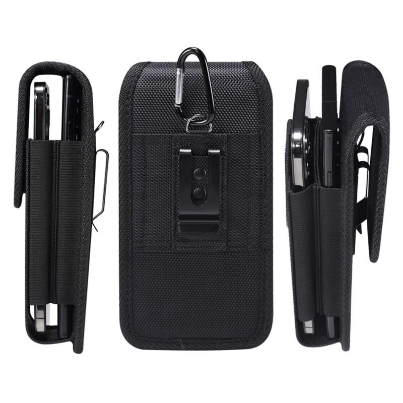 Για 6.5-6.9 ιντσών Smartphones Κάθετη διπλή σχάρα Oxford ύφασμα τηλέφωνο υπόθεση (μαύρο)