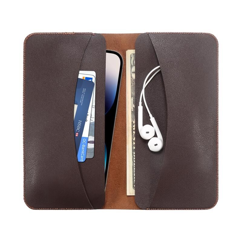 Για 6,7-6,9 ιντσών τηλέφωνο Διπλό πορτοφόλι Business Clutch τηλέφωνο τσάντα (σκούρο καφέ)