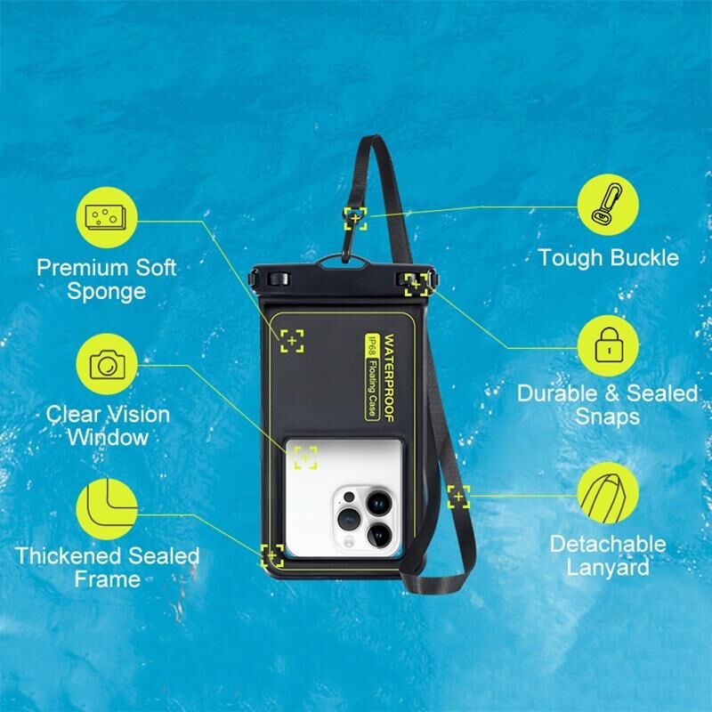 Για κινητό 6,9 ιντσών, εξωτερικού χώρου, κολύμβηση, οθόνη αφής, πλωτή αδιάβροχη θήκη IPX8 έως 30 μέτρα (Σκούρο Γκρι)