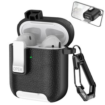For AirPods 1 / 2 Leather Texture Wireless Earphones Case with Hook & Holder(Black White)