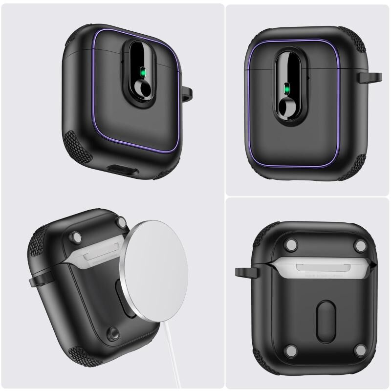 For AirPods 1 / 2 Armor Magnetic Wireless Earphones Case with Security Lock(Black Pink)