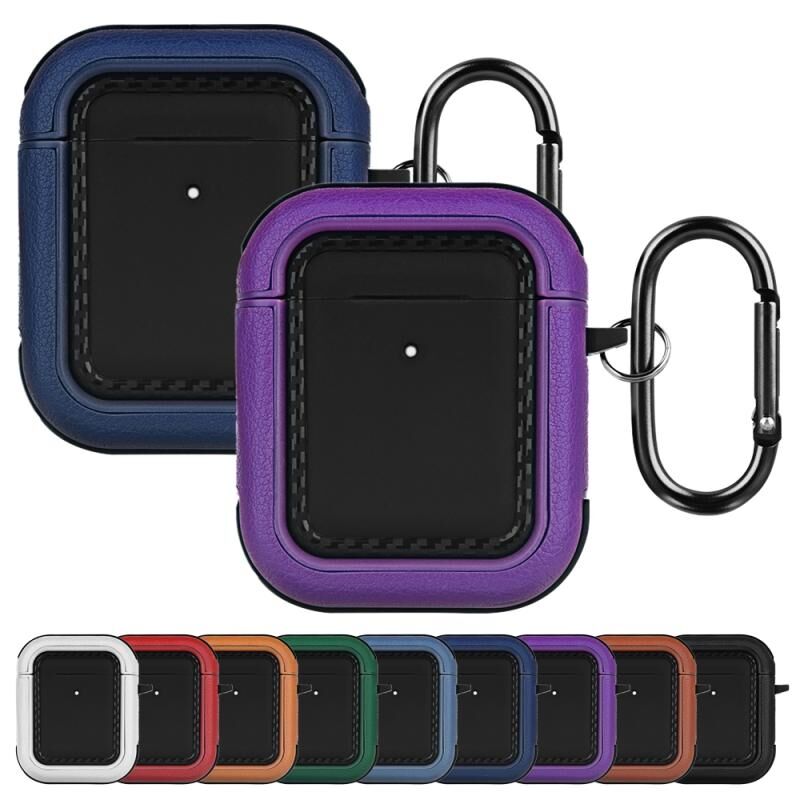 Θήκη προστασίας ακουστικών με υφή δέρματος για AirPods 1 / 2 (Μαύρο καφέ)
