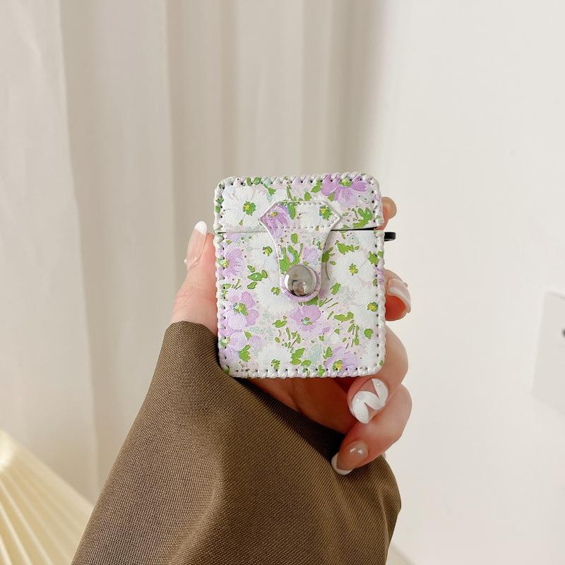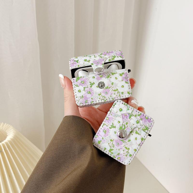For AirPods 1/2 PU Leather Wireless Earphone Case(Purple White Flowers)