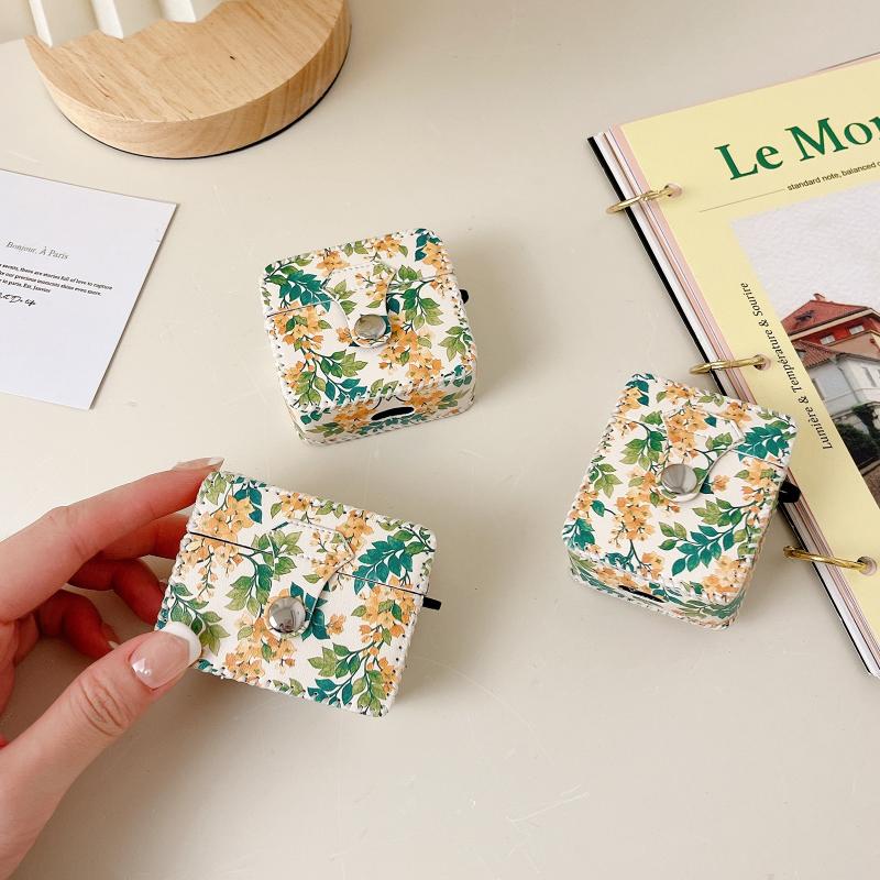 For AirPods 1/2 PU Leather Wireless Earphone Case(Yellow Flower)