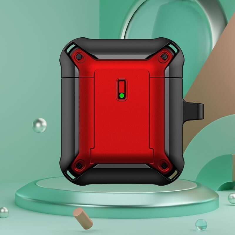 Θήκη προστασίας ασύρματων ακουστικών με αγκίστρι και ολισθητική αγκράφα για AirPods 1 / 2 (Μαύρο Κόκκινο)