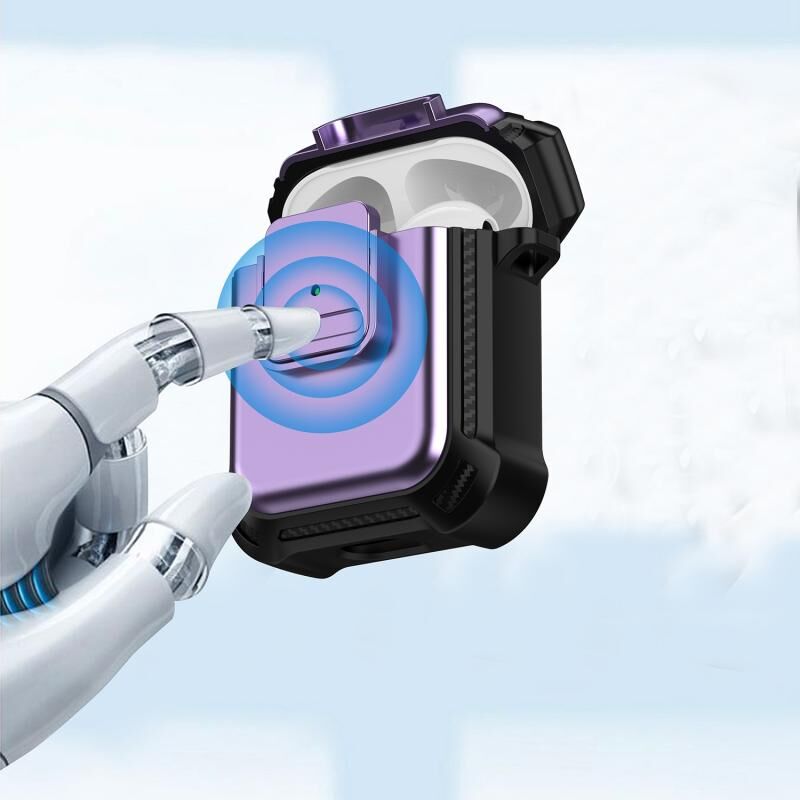 Θήκη προστασίας ακουστικών ανθεκτική σε κρούσεις TPU + PC για AirPods 1 / 2 με διακόπτη (Μαύρο)