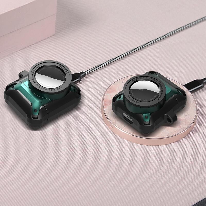 Θήκη προστασίας για AirPods 1/2, ασύρματα ακουστικά, με θήκη AirTag (Μαύρο)