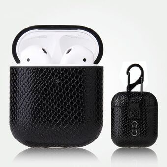 Θήκη προστασίας από δέρμα PU με υφή φιδιού, αντι-πτώσεων για AirPods 1 & 2 με καραμπίνερ (Μαύρο)