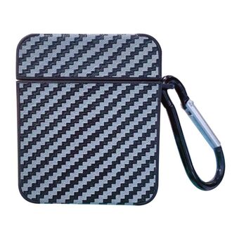 For AirPods 1 / 2 Carbon Fiber Square Leather Earphone Case with Hook(Black)