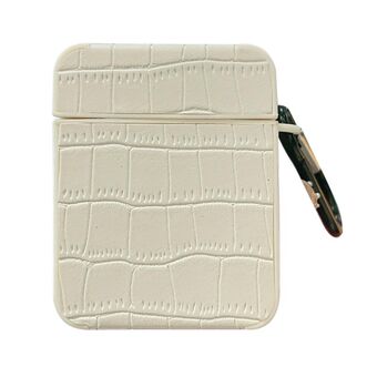 For AirPods 1 / 2 Crocodile Pattern Square Leather Earphone Case(White)