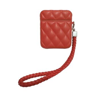 For AirPods 1 / 2 Down Coat Texture PU Earbuds Box PC Case with Lanyard(Red)
