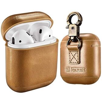 ICARER Cowhide Leather Anti-lost Dropproof Wireless Earphones Charging Box Protective Case for Apple AirPods 1/2, with Clasp(Khaki) (ICARER)