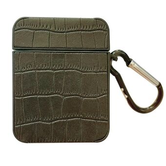 For AirPods 1 / 2 Crocodile Pattern Square Leather Earphone Case(Black)