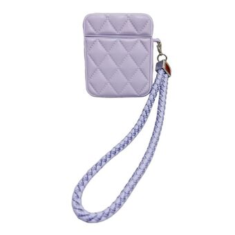For AirPods 1 / 2 Down Coat Texture PU Earbuds Box PC Case with Lanyard(Purple)
