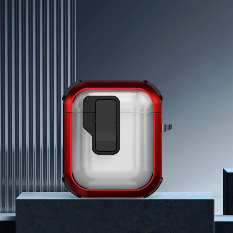 For AirPods 2 Thunder Clear Wireless Earphones Protective Case with Magnetic Switch(Red)
