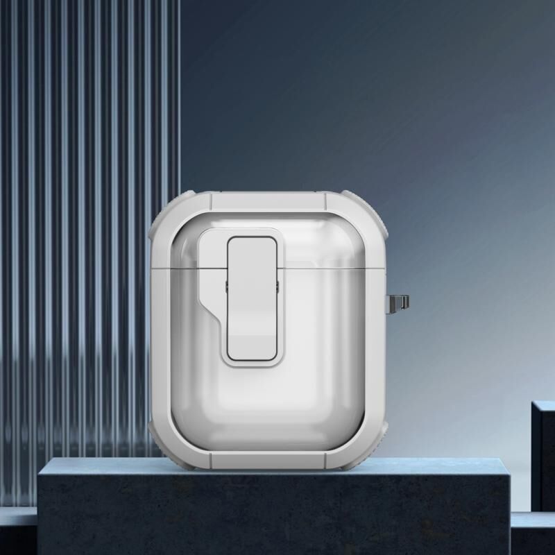 For AirPods 2 Thunder Clear Wireless Earphones Protective Case with Magnetic Switch(White)
