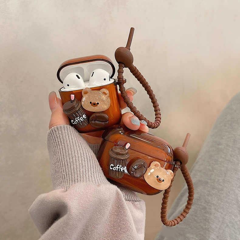 For AirPods 3 Cartoon 3D Coffee Bear Headphones Case Protective Shell Cover