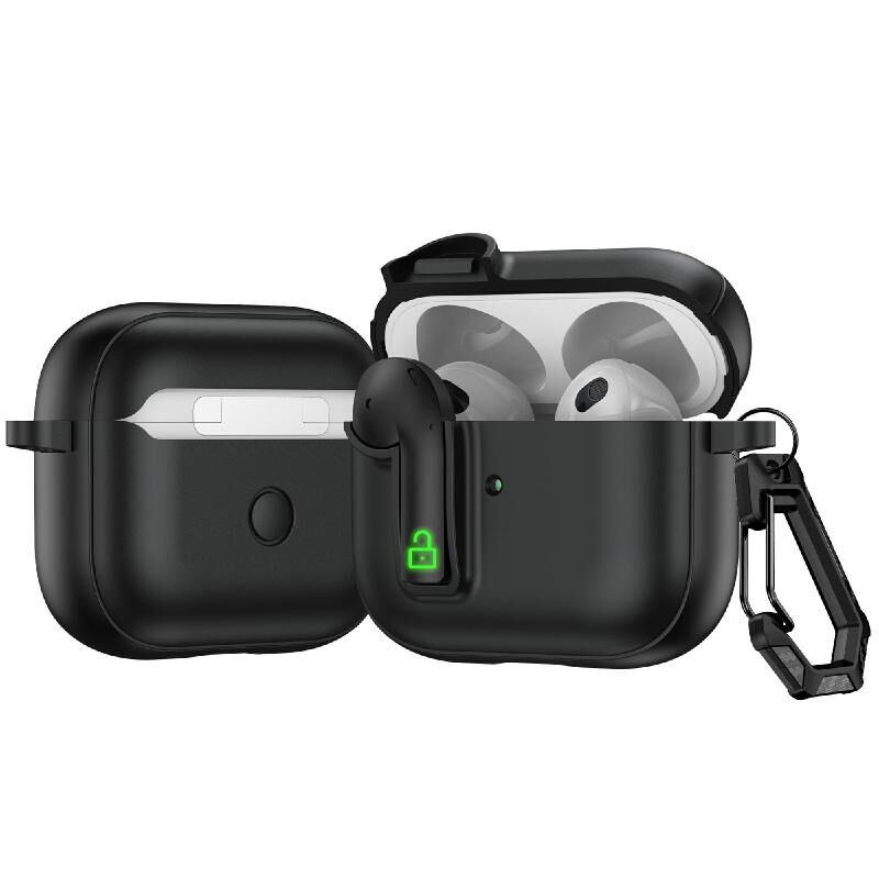 For AirPods 3 Colorful Lock Earphones Protective Case(Black)