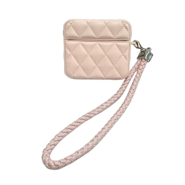 For AirPods 3 Down Coat Texture PU Earbuds Box PC Case with Lanyard(Pink)