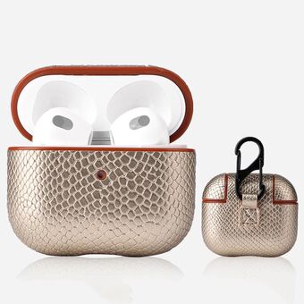 Θήκη προστασίας ακουστικών με υφή δέρματος φιδιού και αγκίστρι για AirPods 3 (Καφέ)