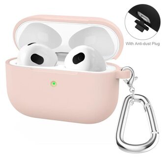 Θήκη προστασίας ακουστικών σιλικόνης με παχύρρευστη υφή και στρογγυλό πάτο, με γάντζο για AirPods 3 (Μπεζ)