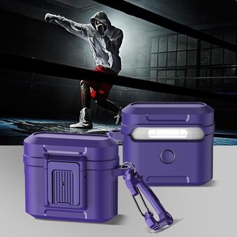 Θήκη Προστασίας Ακουστικών AirPods 3 από TPU+PC με Κλείδωμα Ασφαλείας & Καραμπίνερ, Σχέδιο Carbon Brazing (Μωβ)