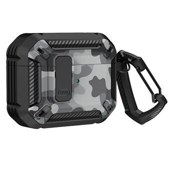 Θήκη ακουστικών με εκτύπωση δύο χρωμάτων, κλείδωμα με διακόπτη & γάντζο για AirPods 3 (Μαύρο + Καμουφλάζ Γκρι)
