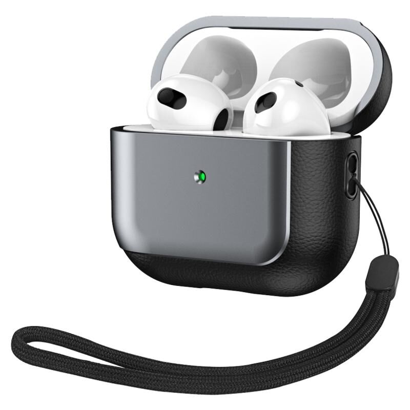 For AirPods 3 Electroplated Leather Texture Wireless Earphones Protective Case(Grey)