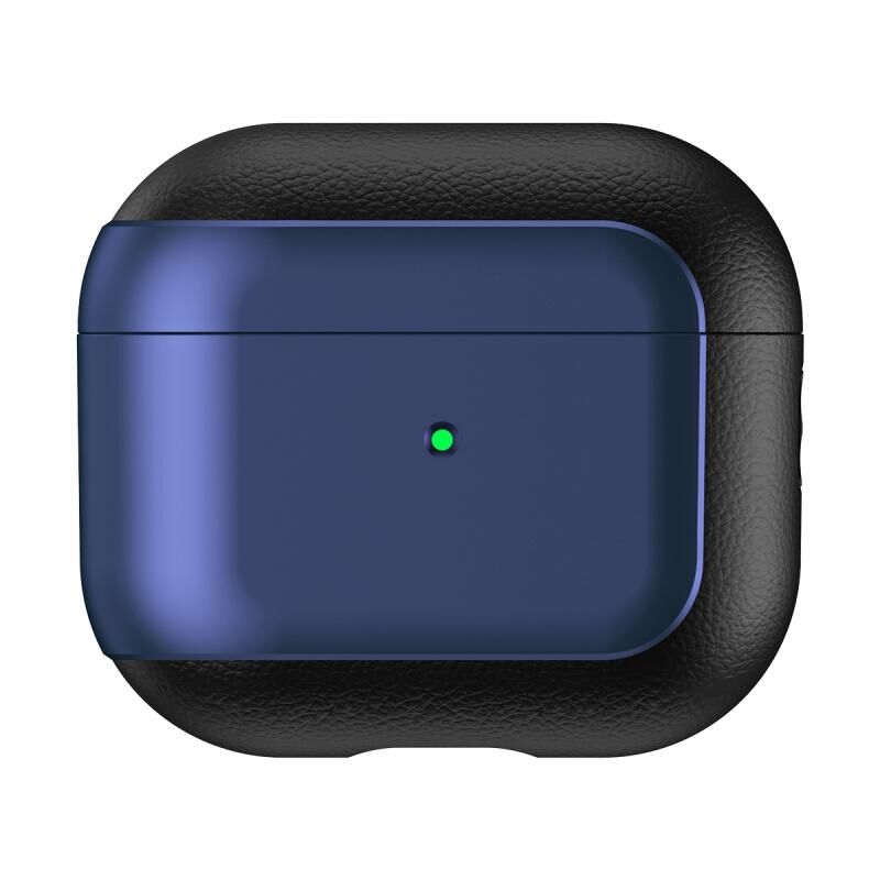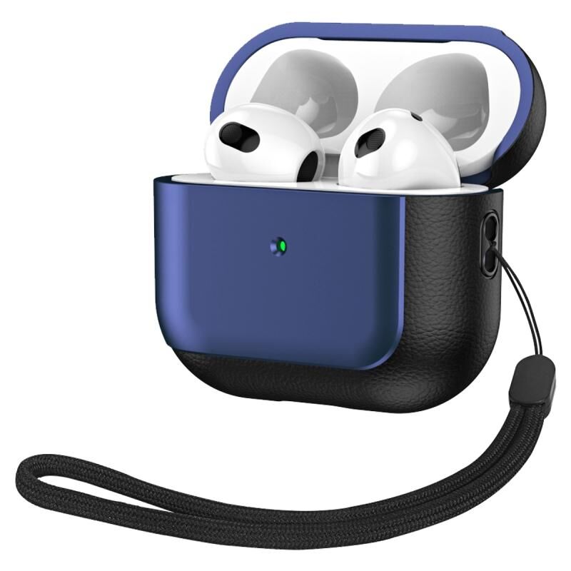 For AirPods 3 Electroplated Leather Texture Wireless Earphones Protective Case(Navy Blue)