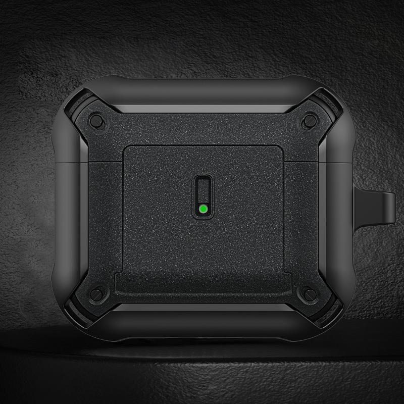 Θήκη προστασίας ασύρματων ακουστικών AirPods 3 με αγκίστρι και ολισθητική πόρπη (Μαύρο Κόκκινο)