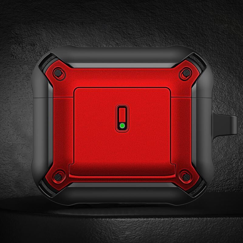 Θήκη προστασίας ασύρματων ακουστικών AirPods 3 με αγκίστρι και ολισθητική πόρπη (Μαύρο Κόκκινο)