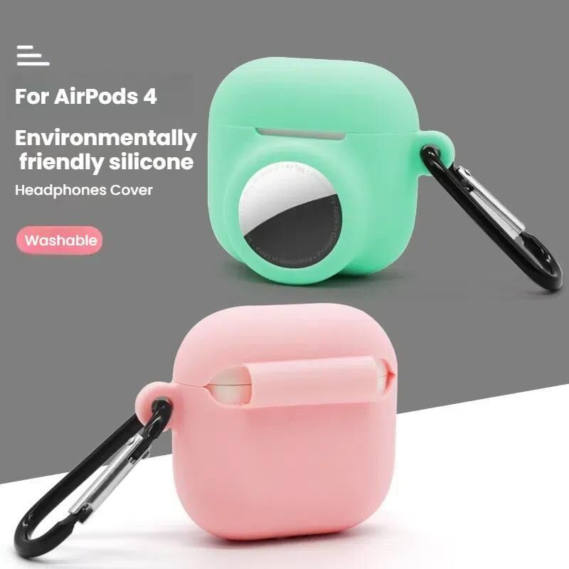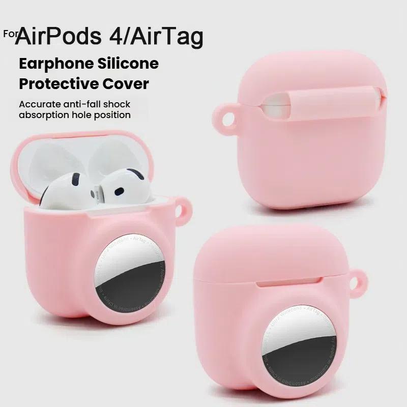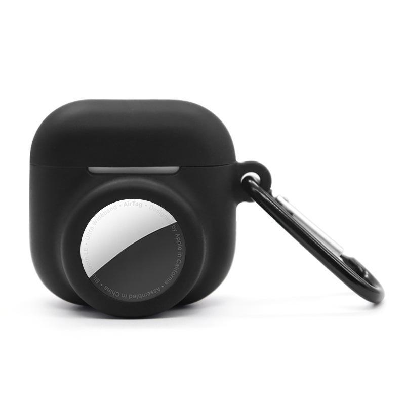 Θήκη AirPods 4 / AirTag 2 σε 1 Σιλικόνης, Αντιχαραχτική, Πλήρης Κάλυψη (Μαύρο)