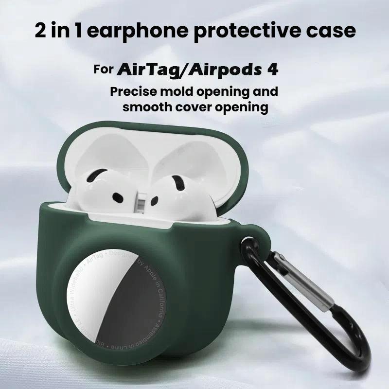 Θήκη AirPods 4 / AirTag 2 σε 1 Σιλικόνης, Αντιχαραχτική, Πλήρης Κάλυψη (Λευκό)