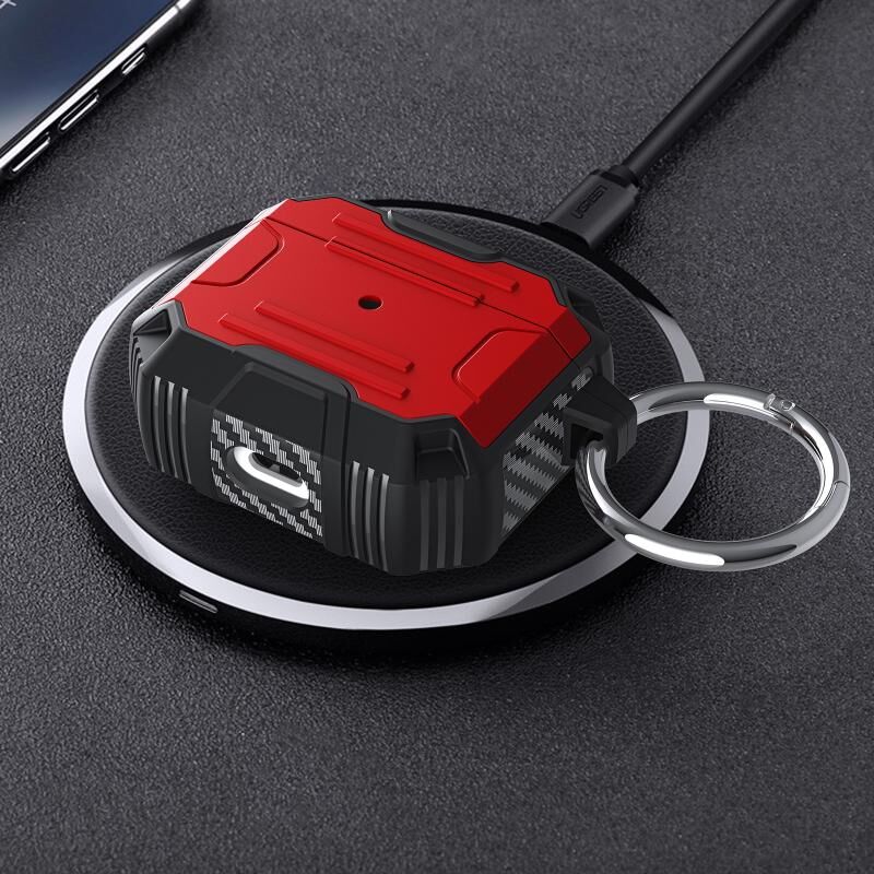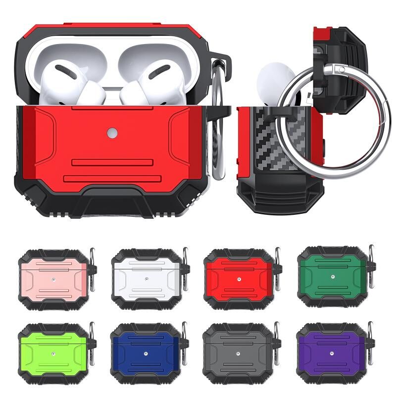 For AirPods 4 Armor TPU Hybrid PC Shockproof Earphones Case with Hook(Red)