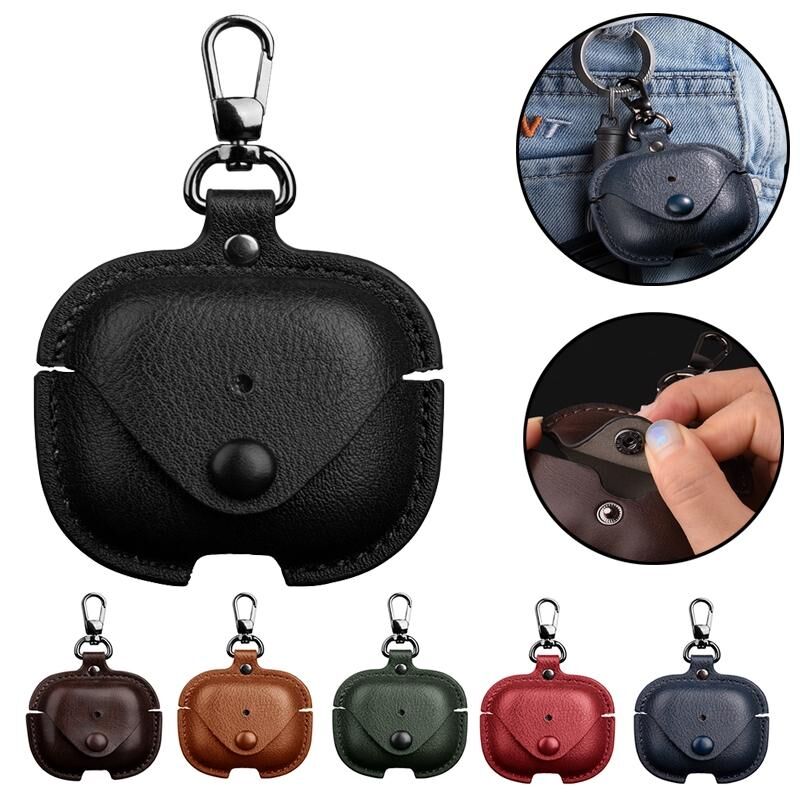 For AirPods 4 Business Leather Earphone Protective Case with Hook(Red)