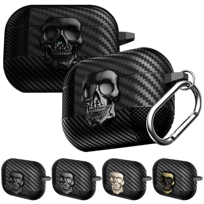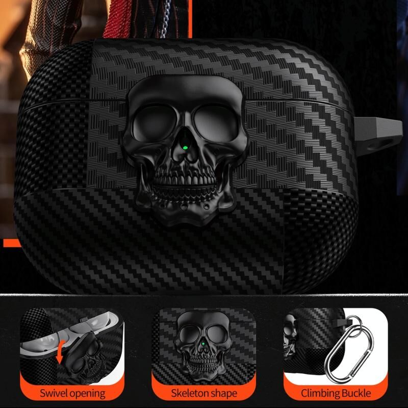 Θήκη Προστασίας Ακουστικών Bluetooth AirPods 4 με Σχέδιο Κρανίου και Αντιολισθητική Υφή Άνθρακα (Μαύρο)