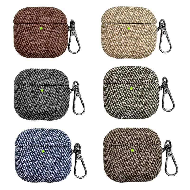 For AirPods 4 Diagonal Striped Leather Bluetooth Earphone Protective Case(Apricot)