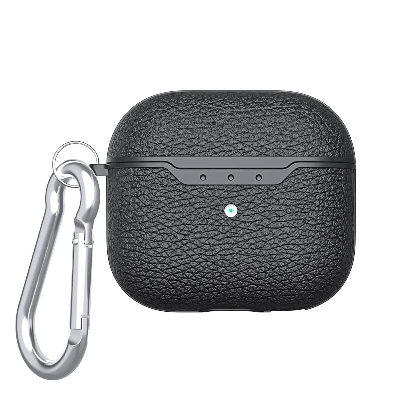 For AirPods 4 Litchi Texture TPU Shockproof Earphones Case with Hook(Black)