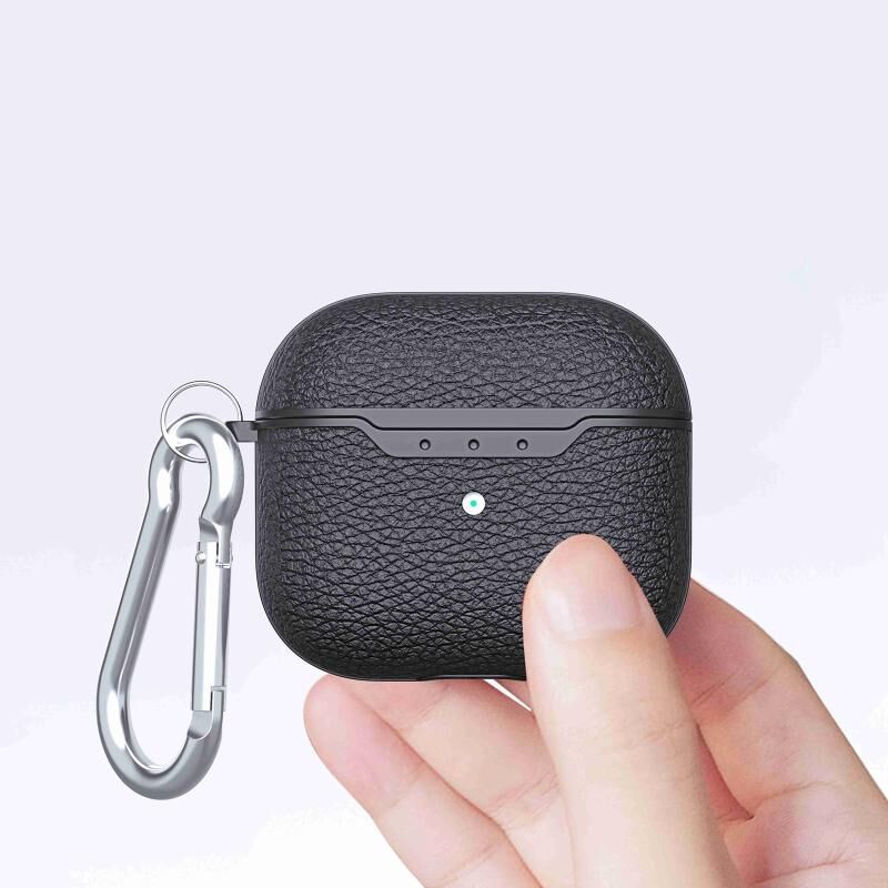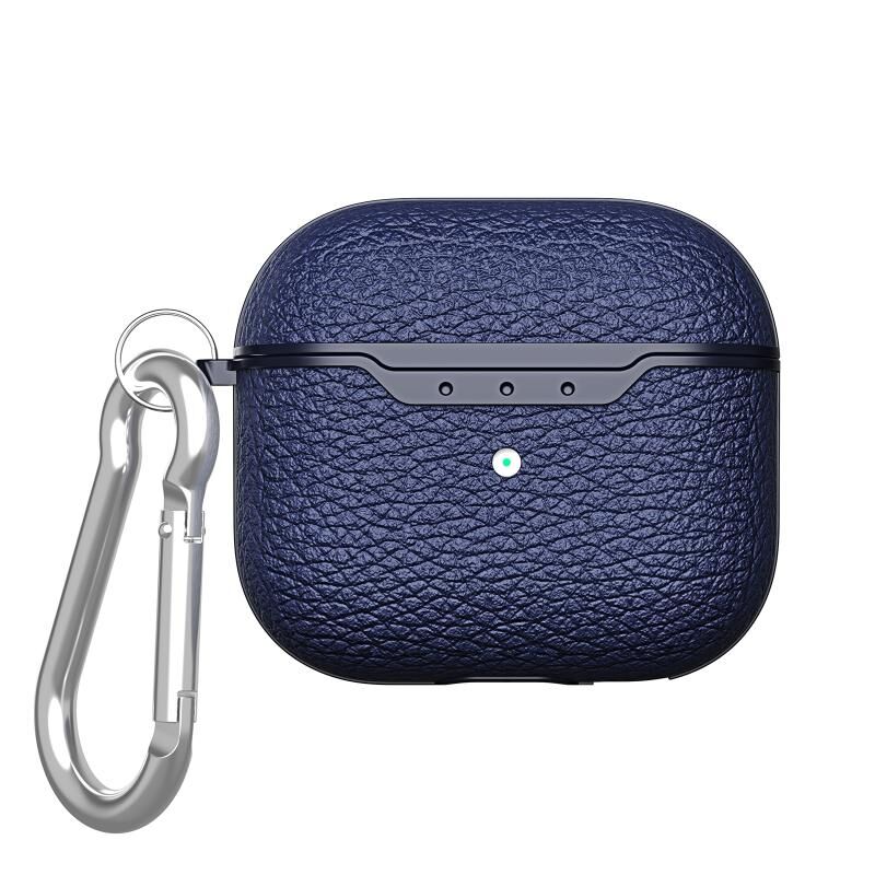 For AirPods 4 Litchi Texture TPU Shockproof Earphones Case with Hook(Blue)