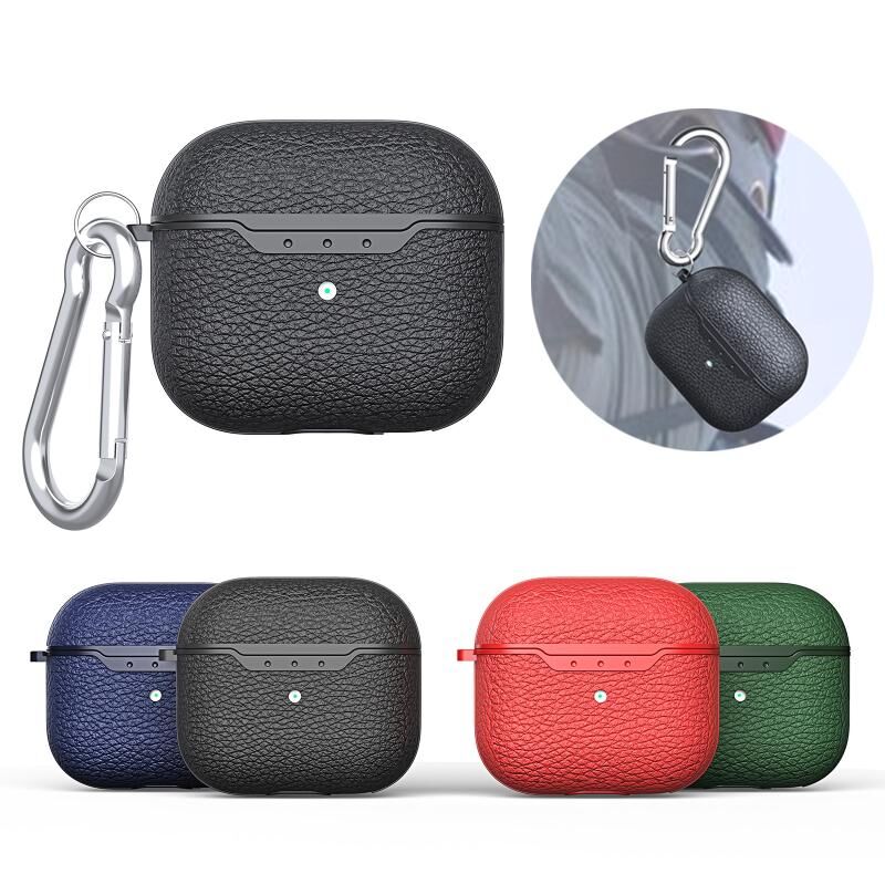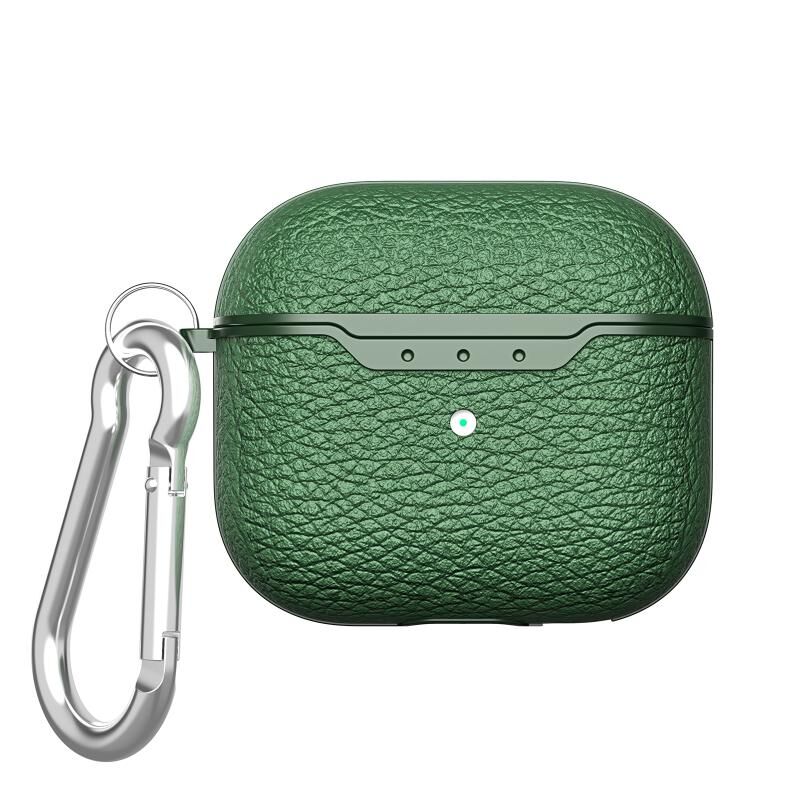 For AirPods 4 Litchi Texture TPU Shockproof Earphones Case with Hook(Green)