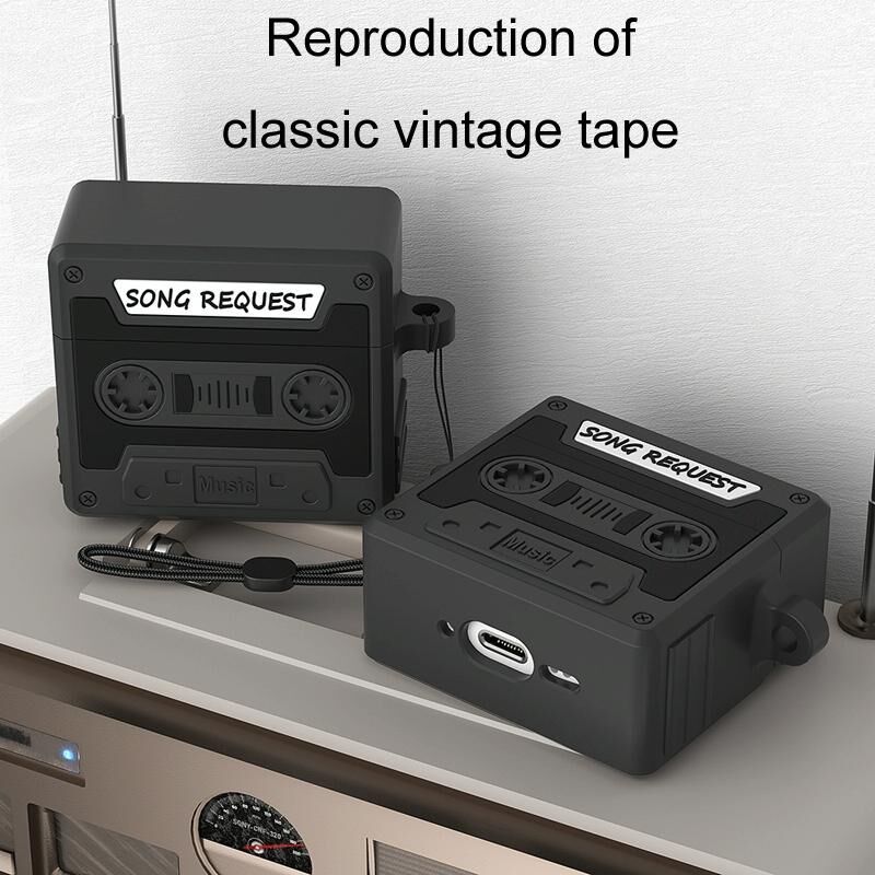 Θήκη προστασίας ακουστικών AirPods 4 από σιλικόνη σε σχήμα ρετρό ταινίας (Σκούρο Γκρι)