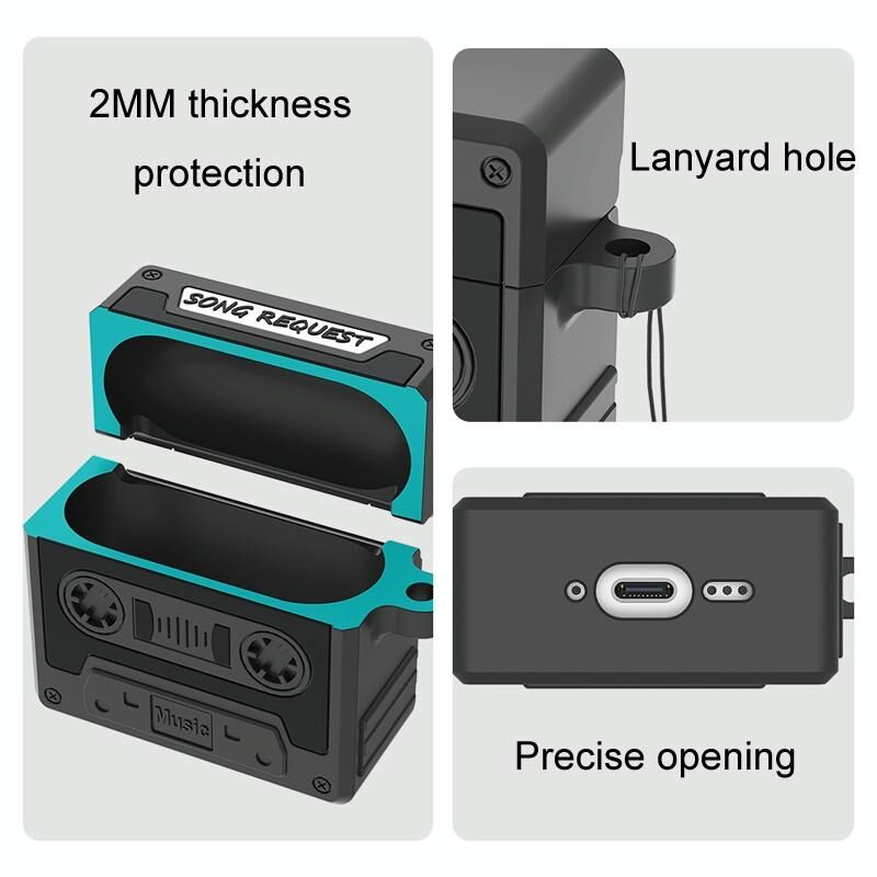 Θήκη προστασίας ακουστικών AirPods 4 από σιλικόνη σε σχήμα ρετρό ταινίας (Σκούρο Γκρι)