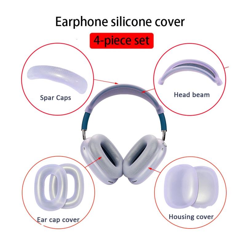 For AirPods Max Headphones 4-in-1 Silicone Replacement Cover Kit(White)