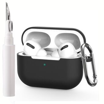 For AirPods Pro Silicone Earphone Protective Cover with Cleaning Pen + Hanging Buckle(Black)