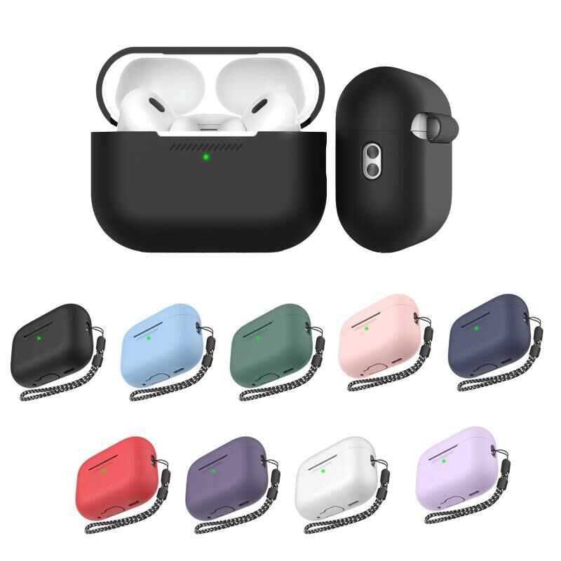 Θήκη προστασίας μιας ολόκληρης σιλικόνης AhaStyle PT187 για AirPods Pro 2 με κορδόνι (Μαύρο) (Μωβ)