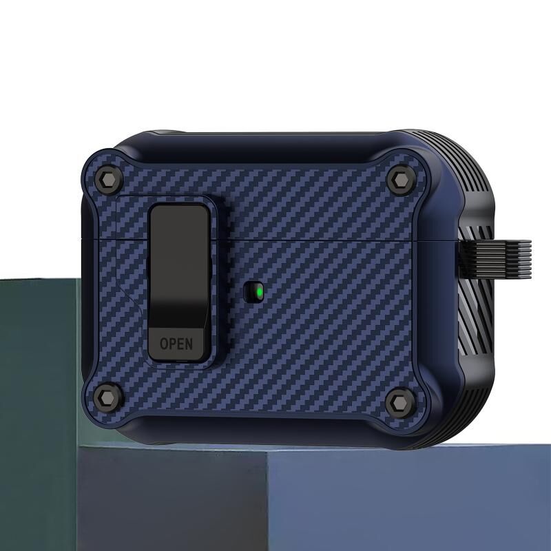 For AirPods Pro 2 Carbon Fiber Magnetic Automatic Switch Earphone Protective Case(Blue)
