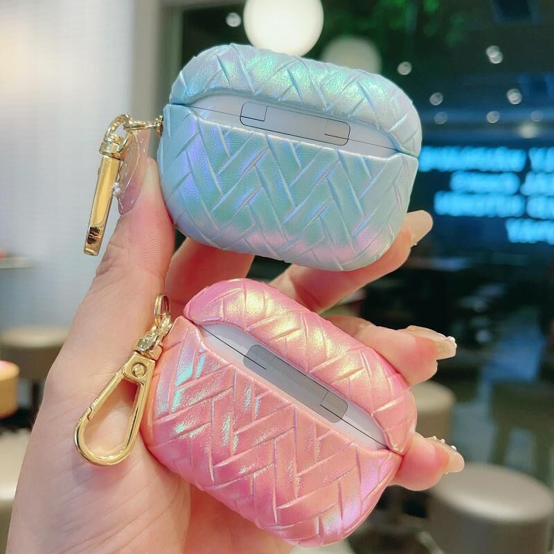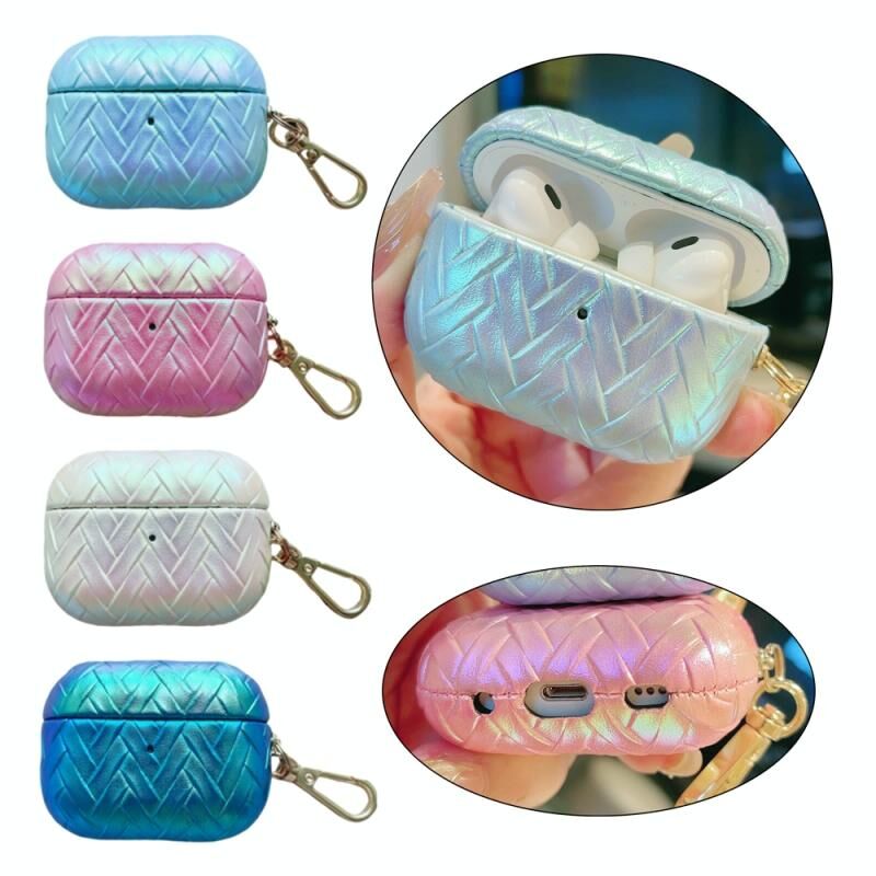 Για AirPods Pro 2 Θήκη ακουστικών με υφή πολύχρωμης ύφανσης και θήκη PC με γάντζο (Μπλε)