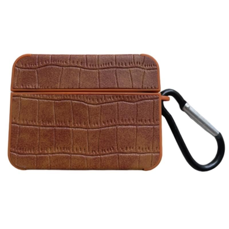 For AirPods Pro 2 Crocodile Pattern Square Leather Earphone Case(Brown)