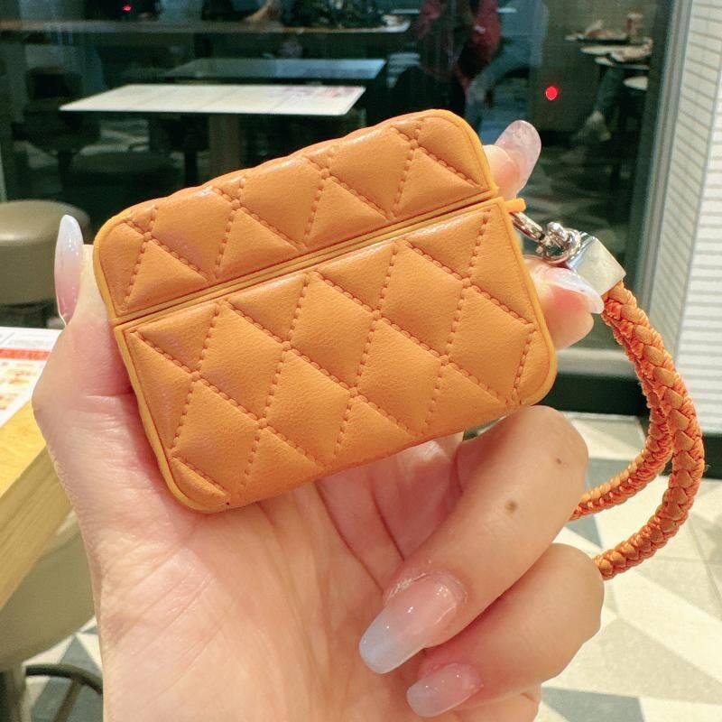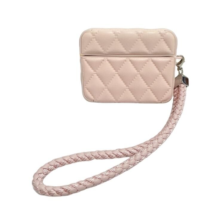 Θήκη για AirPods Pro 2 με Υφή Μπουφάν, PU, για Ακουστικά, Θήκη PC με Λουρί (ρόζ)