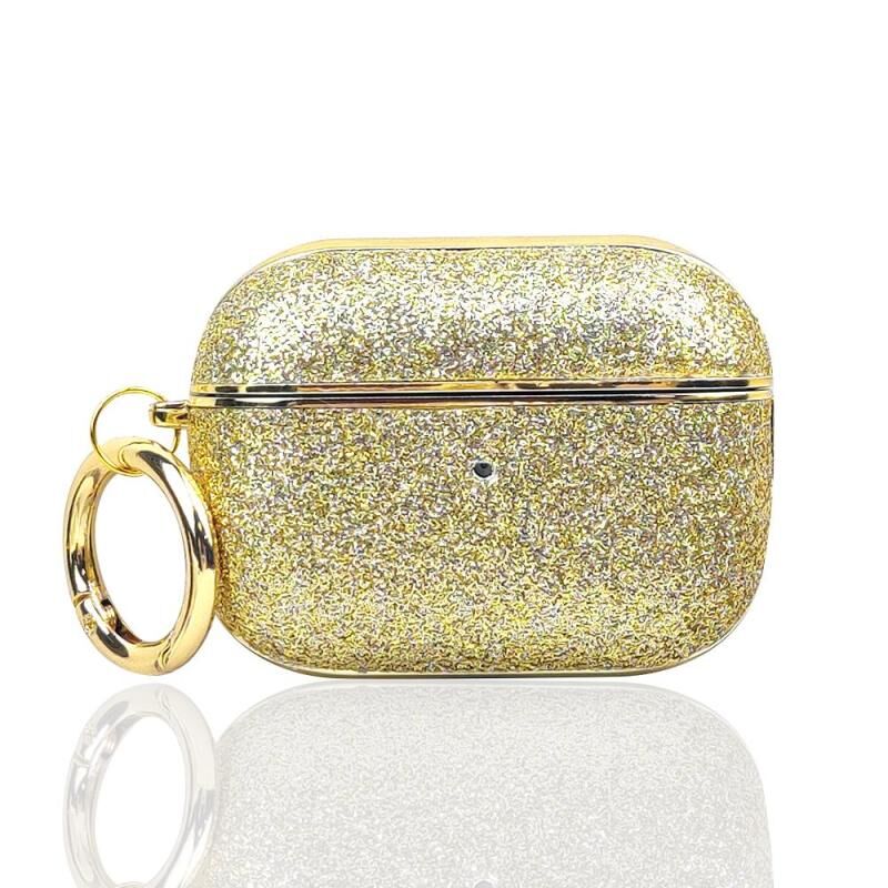 For AirPods Pro 2 Electroplating Glitter Powder Wireless Earphone Protective Case(Gold)